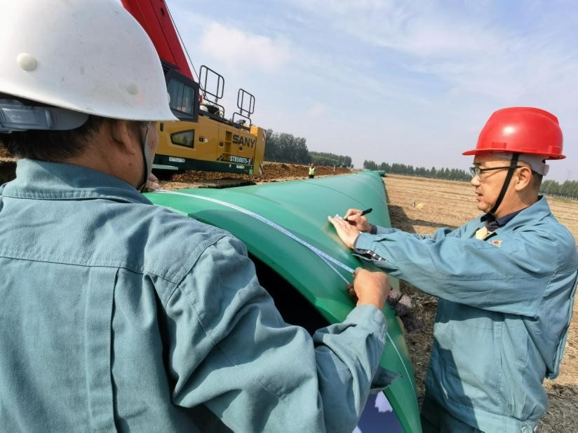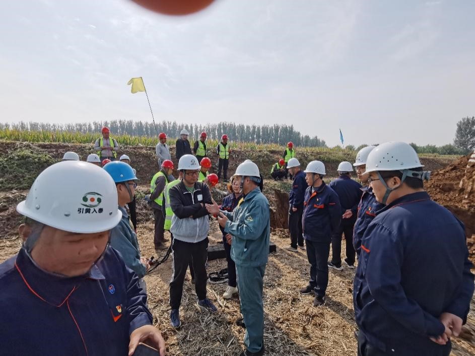 “引黃入泰”工程總投資23億元,輸管線總長80公里,自東平縣至岱岳區(qū),途經(jīng)東平縣、肥城市、岱岳區(qū)約10個(gè)鄉(xiāng)鎮(zhèn)、89個(gè)村,每年取水規(guī)模5000萬立方米。是泰安市委、市政府落實(shí)黃河國家戰(zhàn)略,解決泰安市的水資源比較匱乏,城市供水能力不足的重點(diǎn)工程,既是落實(shí)黃河流域生態(tài)保護(hù)和高質(zhì)量發(fā)展戰(zhàn)略、貫徹“四水四定”原則的重要舉措,又是提高城市承載能力、提升群眾生活品質(zhì)的重大民生工程。該工程主管道為DN1400,為確保工程質(zhì)量,減少樓稅率,“引黃入泰”工程指揮部慕名選用“宏力牌”EPDM橡膠密封圈,因?yàn)槭鞘状问褂?,工程?xiàng)目部來電要求宏力橡膠提高安裝指導(dǎo)。宏力橡膠更加重視此項(xiàng)重點(diǎn)工程,總經(jīng)理高學(xué)軍親自帶隊(duì),技術(shù)中心主任黃良根與售后工程師一起趕到現(xiàn)場,與施工方技術(shù)人員交流溝通,順利進(jìn)行了膠圈安裝。