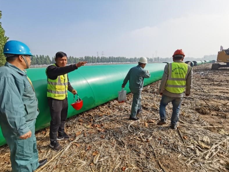 宏力橡膠總經(jīng)理高學(xué)軍親自到“引黃入泰”工程現(xiàn)場指導(dǎo)安裝。